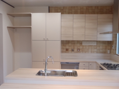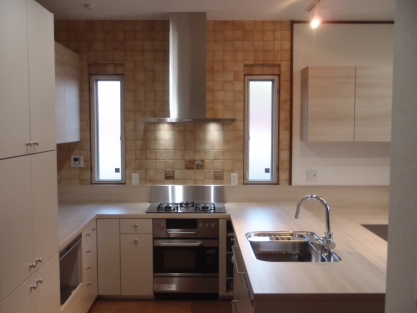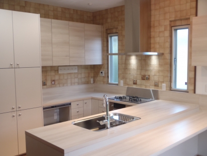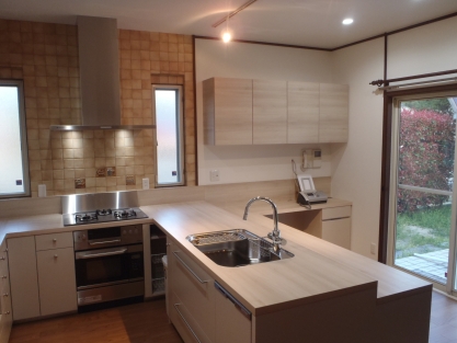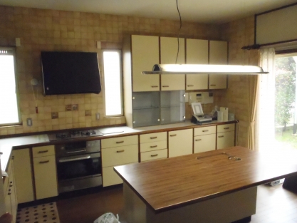 とても立派な屋敷で、既設のキッチンも素晴らしいシステムキッチンが備わっていたのですが、作業動線が悪い・作業スペースが少ないとご不満があり、それらの改善を第一に考えてのリフォームとなりました。 また可能であれば対面式にしたいとのことで、限られたスペースだったのですがカウンター付き対面キッチンにすることによって開放的な空間となり、対面式のキッチンが実現出来ました。 既存の壁の仕上げ材で、お施主様のお気に入りのイタリア製タイルも一枚づつ剥がし再利用できるよう加工を施し活かすことができ、お施主様には喜んで頂きました。 今回のキッチンはキッチンハウス社製のオーダーキッチンでしたので、作業台の高さや収納など細かな部分までお施主様のご希望通りのシステムキッチンになりました。