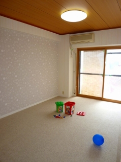 北欧テイストを盛り込んだ明るい空間に、水廻り部分を含め全面改装させていただきました。 床材は洗うこともできる柔らかく温かいタイルカーペットをご提案し、クロスは珪藻土クロスを採用したりアクセントで色を変えたりと素材にこだわりました。リビング部分にはたっぷりと収納を設置しすっきりと。パソコンコーナーも造り機能的に仕上がりました。淡いグリーンとホワイトの色味で水廻りを統一しました。