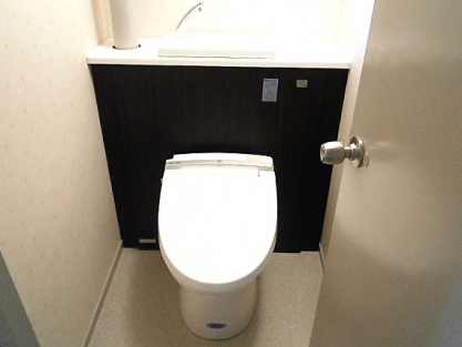 閑静な住宅地に建つ築40年(昭和48年築)の5階建ての公団住宅は、水まわりの設備機器が古く傷んでおり、壁や天井なども長年の汚れなどによりシミが目立っていました。トイレはコーナータンクと縦配管でお掃除しにくいのが悩みでした。