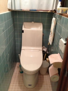 浴室とトイレのリフォームのご依頼でした。トイレは、節水タイプに取替えたいとの事でした。床と壁のタイルは、今のままの残してほしいとのことでしたので、既設の排水を利用できるリフォーム用のおトイレをご提案させていただきました。 また浴室は、タイル貼りのお風呂は冬とても寒く何とかしてほしいとのご要望でした。