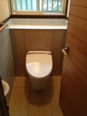 ウォシュレットの水漏れから、新しい便器へ取替えを検討することになりました。タイルの好きなお客様で、また、玄関が桧のえんこ板貼りなので、玄関との一体感も作りながら、素材をタイルにしてほしいとのことでした。