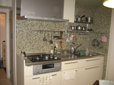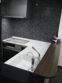 キッチンをリモデルするにあたり、施主様のご意見をお聞きし 吊戸棚部分をステンレス製の棚に変更 隠す収納から見せる収納へ。 モザイクタイルとシンプルでありながら基本性能が充実した キッチンへ。