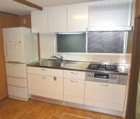 T様よりキッチン・レンジフードの老朽化により、システムキッチンへのリフォームのご依頼がありました。 現状は、タイル張りの流し台で、とても綺麗にお手入れが行き届いたキッチンでしたが、レンジフードの老朽化、 床鳴りも気になさられていました。 内装(クロスの張替え)、床の補強・重ね張り、システムキッチンへの改修をすることになりました。