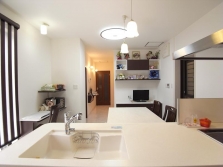 長年、電気屋を営んでいる店舗併用型住宅の家。 若い頃は商品の在庫などを保管する場所として使用していた天井裏の収納だったが、年をとるに従い梯子で上がらないといけない天井裏収納は使い勝ても悪く、危険な場所となってきた。そのため、天井裏に収納せず1階のLDKに物が溢れ子供達が帰って来ても落ち着いて座れる場所もなくなってしまった。 日中はお店にいることの方が多く気にはなっていたのですが、日々の仕事におわれ見ないふりをしてきましたが、お店も後何年出来るかと考えた時に、家族がゆったりと過ごせるスペースがほしい。 とのご要望で 店舗の天井裏にある17帖の収納部分をタダイニングキッチンと和室としてとして使えるようにし、それまでLDKとして使っていた空間をリビングとして広々使えるようにすることで子供さんお孫さん達が一同に集まった時でも御夫婦で過ごされる日々の時間もゆったりとできるような空間造りをしました。