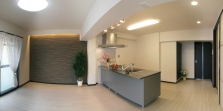 築40年の公団住宅、古く昭和の雰囲気が残る住宅をモダンな空間へとリフォーム。 限られた空間の中でのレイアウトや少しのスペースでも有効に使えるよう、単純なラインで動線もコンパクトにまとめ、動きもスムーズになるようにしました。 一つ一つの部屋が狭く間仕切られ、リビングにまで光りが届かない間取りを変更し、リビングに充分な光りと風が通るようにしました。