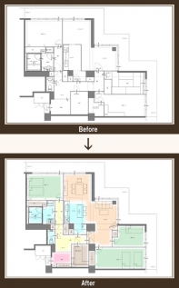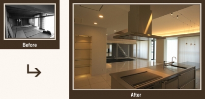 | 高台に建つ築浅のメゾネットタイプの中古マンションを購入されたお施主様。リフォームしてホテルライクなインテリアにしたいとのことでした。またポイントクロスを使用してお部屋にアクセントをつけたいとご希望でした。 | ||||